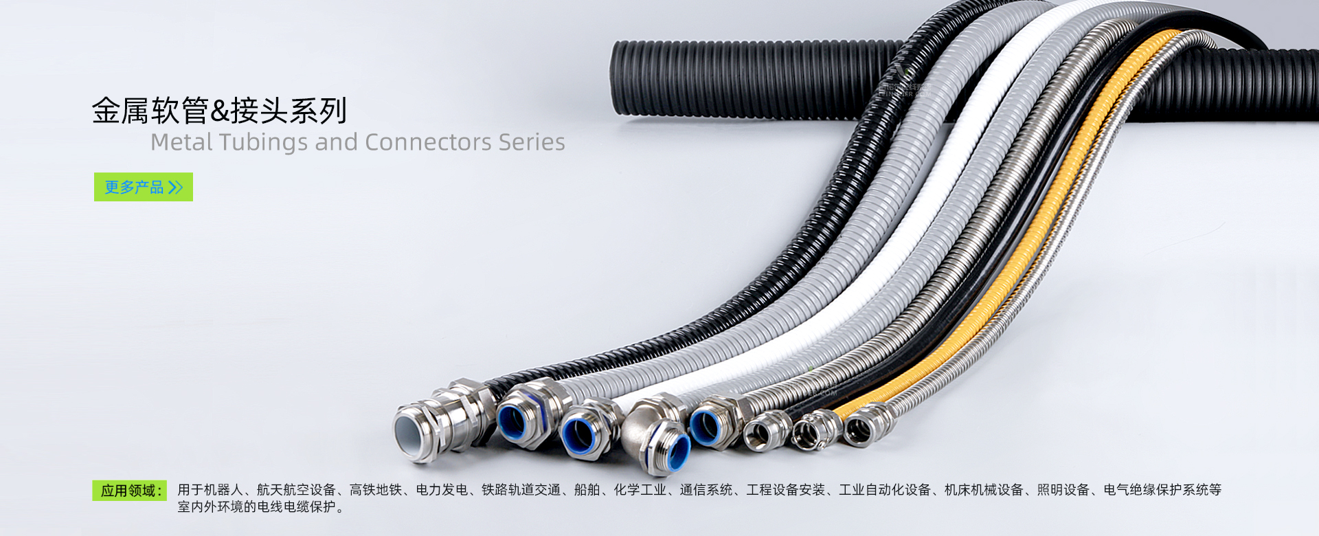 金屬軟管系列LNE-JSBH-P4、LNE-JSB-P4及其適配的不銹鋼軟管接頭系列LNE-DPB、LNE-DGJ-B等產(chǎn)品,具有耐腐蝕、強(qiáng)度高等特性,可滿(mǎn)足電廠(chǎng)大型基建領(lǐng)域各種箱體、柜體、電機(jī)以及重載等部位電線(xiàn)的布線(xiàn)需求。 產(chǎn)品均獲得環(huán)保RoHS認(rèn)證、歐盟CE認(rèn)證,軟管還可定制阻燃V0級(jí)、耐高低溫型。 且可根據(jù)客戶(hù)特殊要求提供定制化服務(wù)。LNE-JSBH-P4