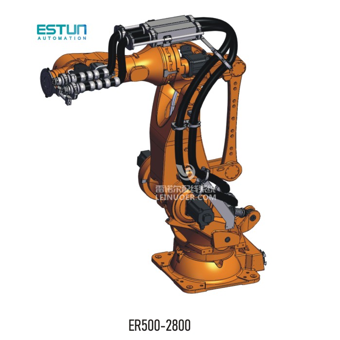 品牌:ESTUN型號:ER500-2800方案:彈簧雙管管線(xiàn)包方案,軸1-6,波紋管Φ68應用:搬運等